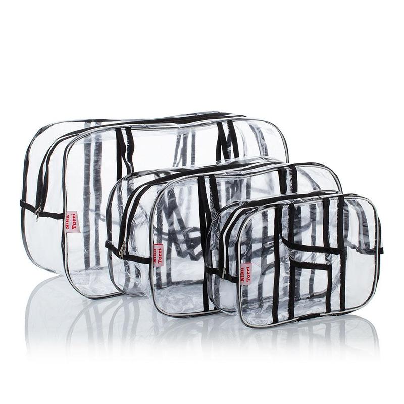 Набор из 3 прозрачных сумок m, l, xl с прозрачными ручками чёрный