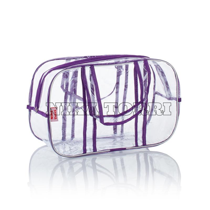 Прозрачная сумка m(40*25*20) с прозрачными ручками в роддом, фиолетовый