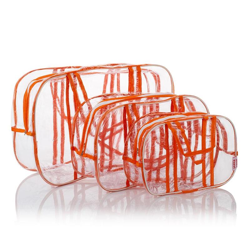 Набор прозрачных сумок в роддом с прозрачными ручками nika torri (s, m, l) оранжевый