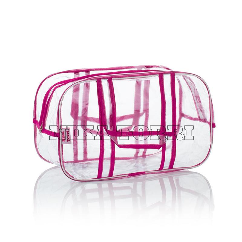 Прозрачная сумка l(50*32*23) с прозрачными ручками в роддом, малина