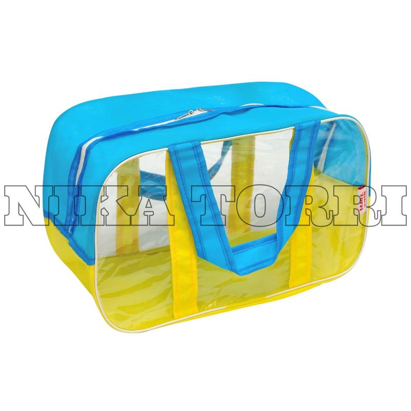 Комбинированная сумка в роддом из спанбонда и прозрачной пленки пвх, размер m(40*25*20), ц...