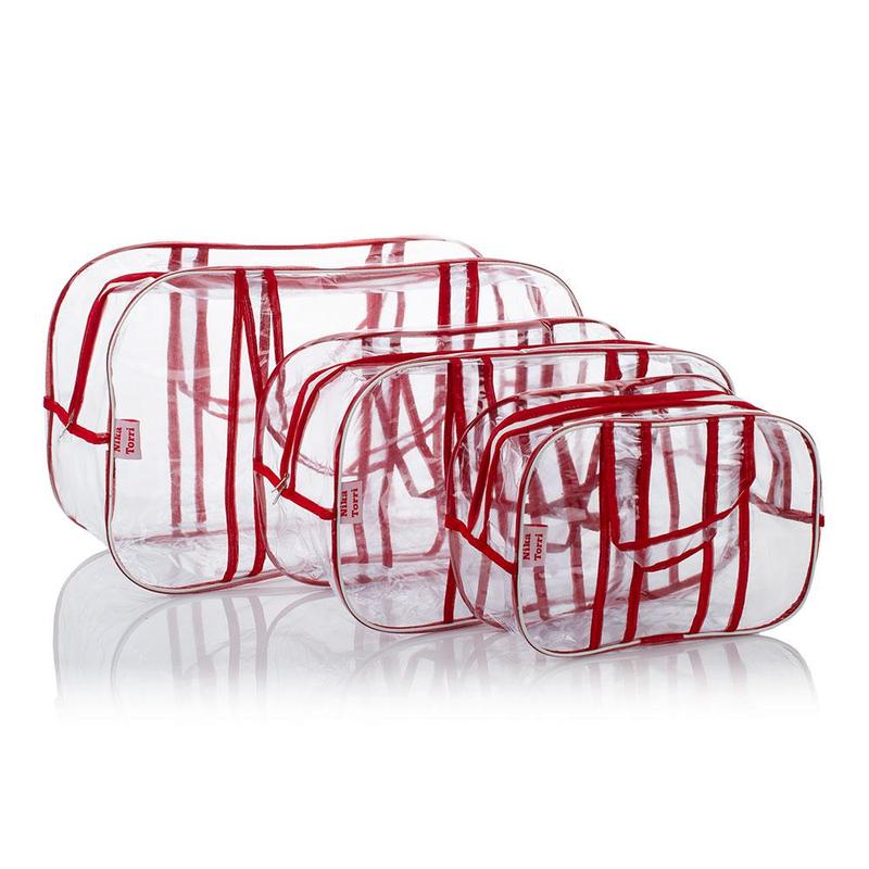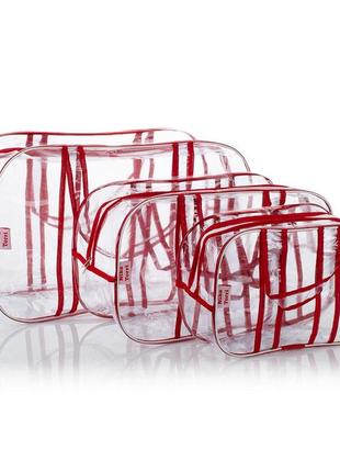 Набор из 3 прозрачных сумок m, l, xl с прозрачными ручками красный