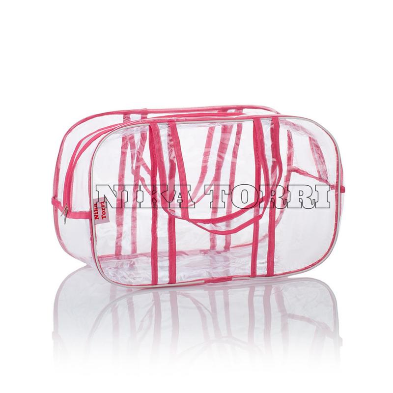 Прозрачная сумка m(40*25*20) с прозрачными ручками в роддом, розовый