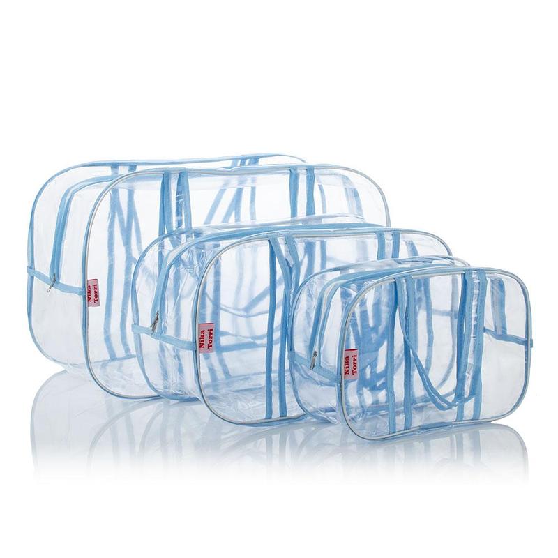 Набор из 3 прозрачных сумок m, l, xl с прозрачными ручками голубой
