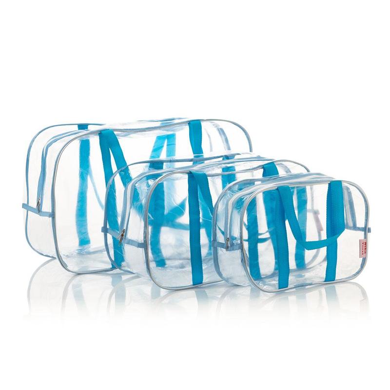 Набор прозрачных сумок (m, l, xl) с ременными ручками голубой