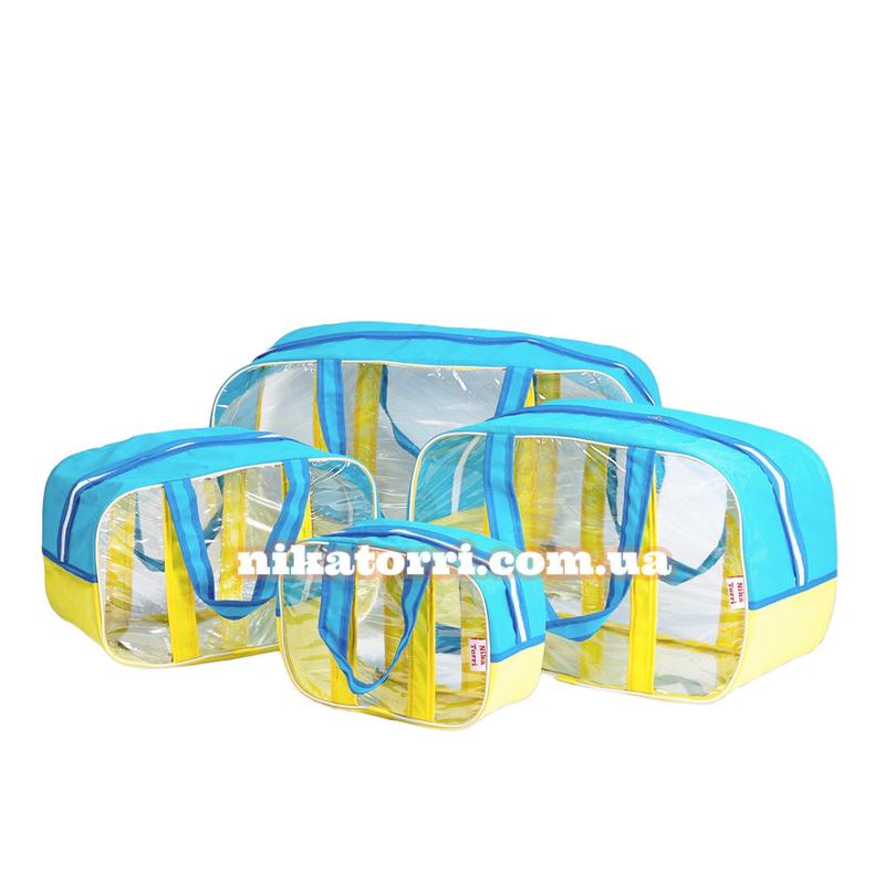 Набор прозрачных сумок (s, m, l, xl) nika torrі комбинированные пвх + спанбонд жёлто-голу...