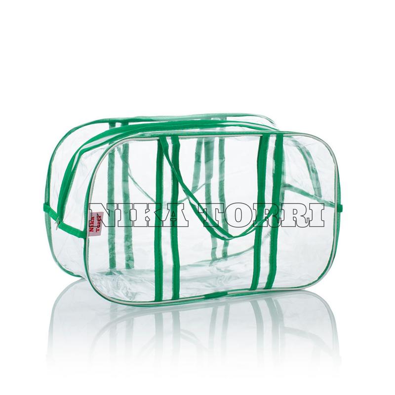 Прозрачная сумка s(31*21*14) с прозрачными ручками в роддом, зелёный