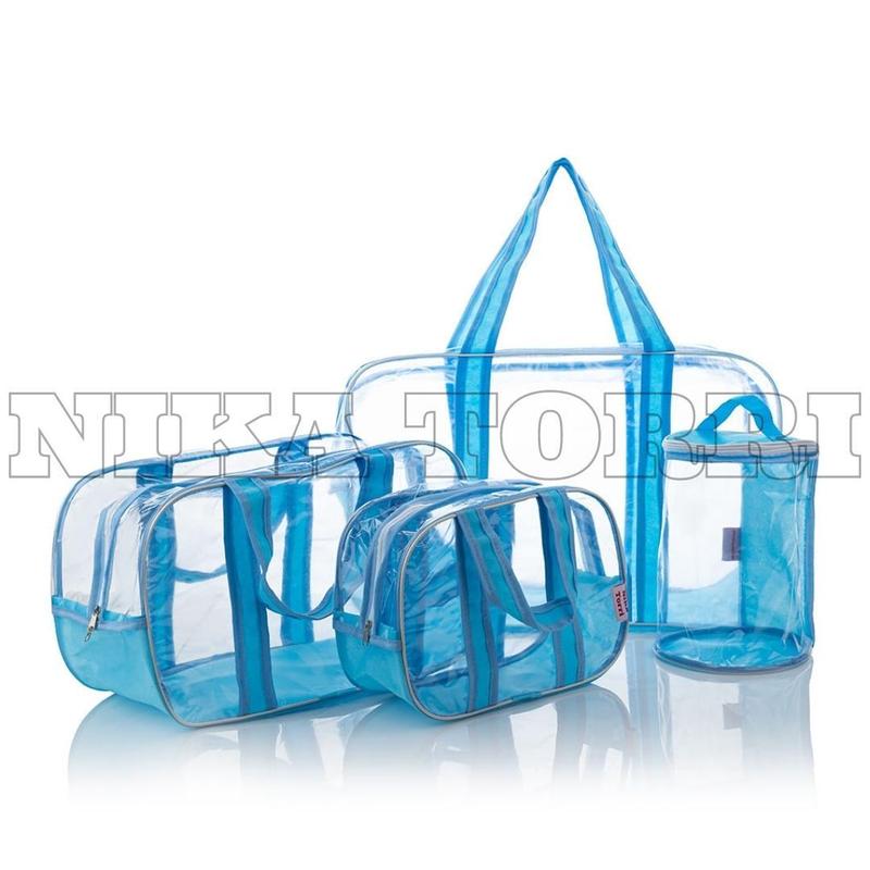 Прозрачные сумки в роддом (s, m, l) + органайзер - цилиндр голубой