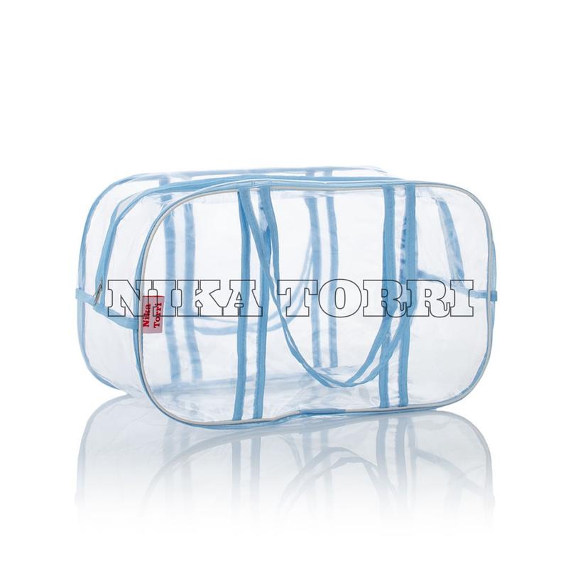 Прозрачная сумка xl(65*35*30) с прозрачными ручками в роддом, голубой