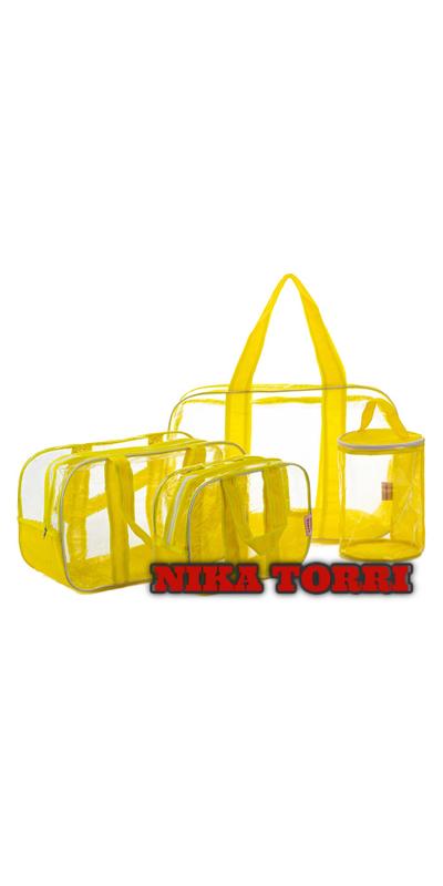 Прозрачные сумки в роддом (s, m, l) + органайзер - цилиндр лимон