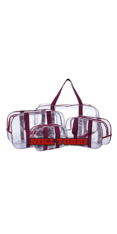 Набор прозрачных сумок (s, m, l, xl) с ременными ручками марсала