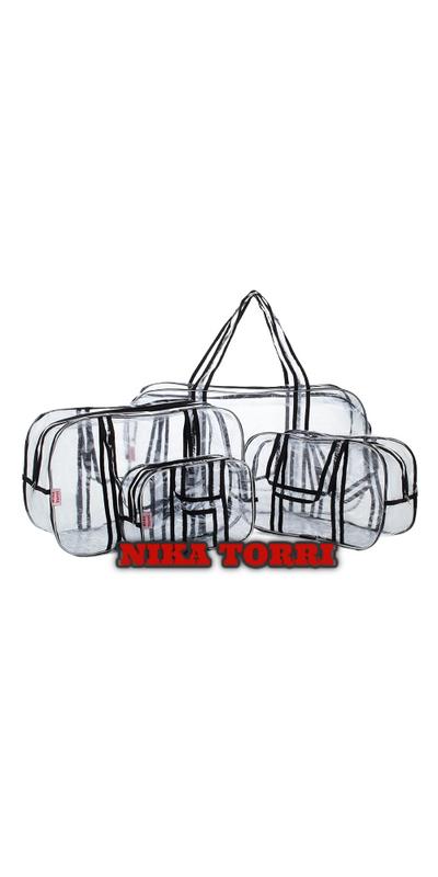 Набор прозрачных сумок (s, m, l, xl) с прозрачными ручками чёрный