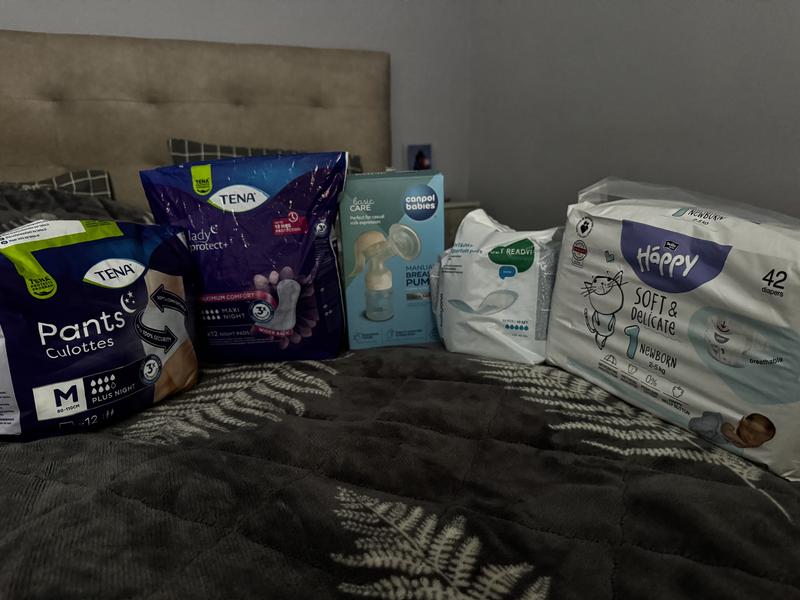 Лот для майбутньої матусі🤰 В пологовий - ідеально☝🏼 • Підгузки 1-ка (нова, закрита упаковка - 42 штуки) • Ручний молоковідсмоктувач (був у використанні декілька разів, зручний , але мені не знадобився) • Післяпологові трусики Tena (залишилось 6 шт) • 2 упаковки післяпологових прокладок (в залишку лишилось 6 та 7 шт) Ціна - 670 грн