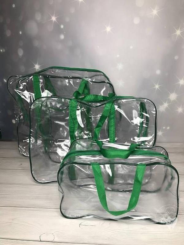 Набор сумок в роддом 3 шт 120 мкр прозрачные зеленые