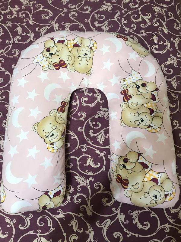 Подушка для беременных нежно розового цвета с мишками. Чехол снимается для удобной стирки. Стан идеален. Можно также использовать как кокон для детёныша.