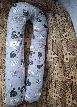 Подушка для беременных можно использовать и для кормления. Размер 140см, Гипоаллергенный наполнитель и хлопковая наволочка на молнии.