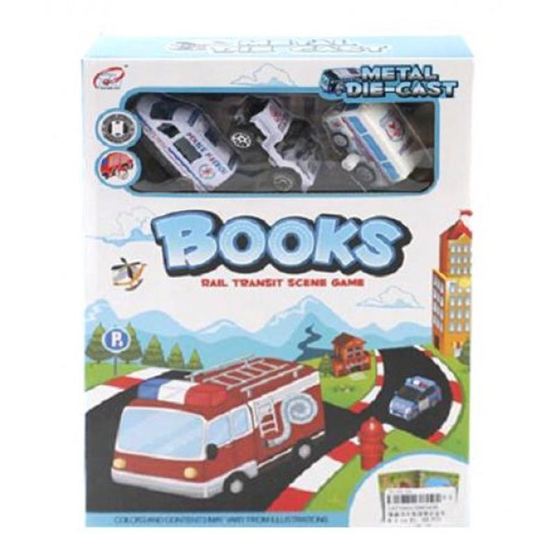 Игровое поле "Город" с машинками. Игровое поле размером 30 х 40 см, картонное. Кроме того, в наборе есть 3 машинки (одна из них с заводным механизмом), пластиковые аксессуары (знаки, заправка, билборды) и наклейки для них.