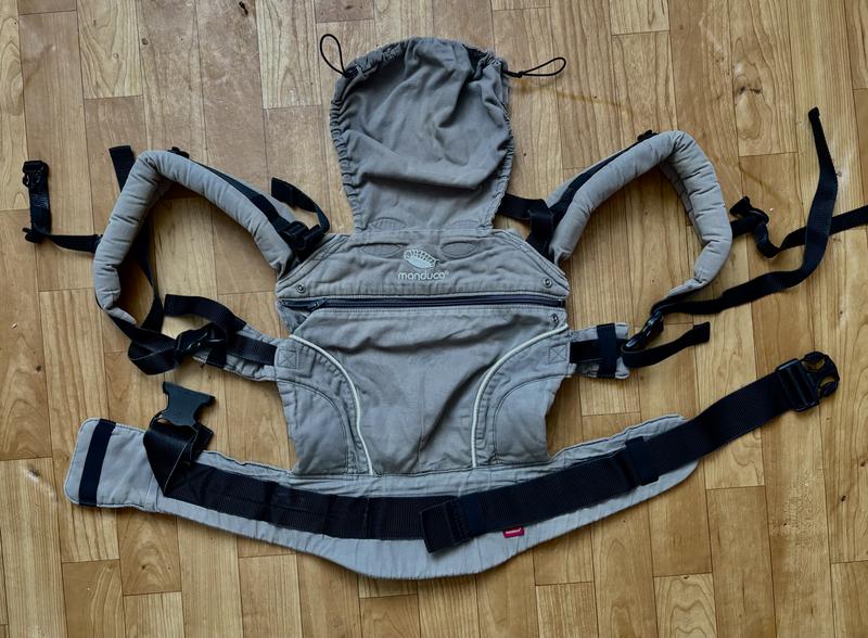 Дуже простий у використанні слінг-рюкзак бренду Meduca з фізіологічною позицією «М» в ніжках, для профілактики дизплазії кульшових суглобів. Створений від народження до 30 кг. Всі механізми справні, після однієї дитини. Є можливість носити дитину як спереду так і позаду
