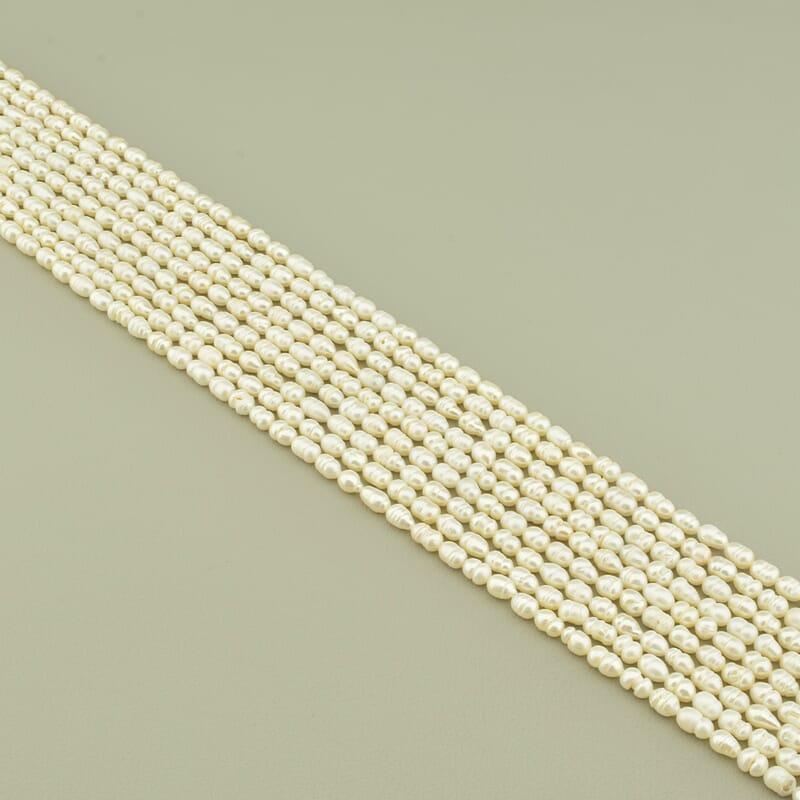 Размер камня: 6х4,5 мм. Тип замочка: Без замка Длина: 33 см. Качество: А Камень: Жемчуг(нат.) Цвет: Бежевый Вес: 9,9 г. Комментарий: размер камня +/-
