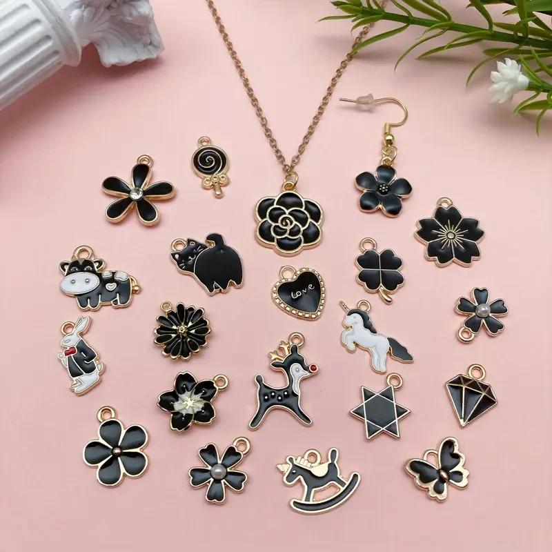 Набор из 100 эмалированных шармиков подвесок для рукоделия, смешанный дизайн, черный