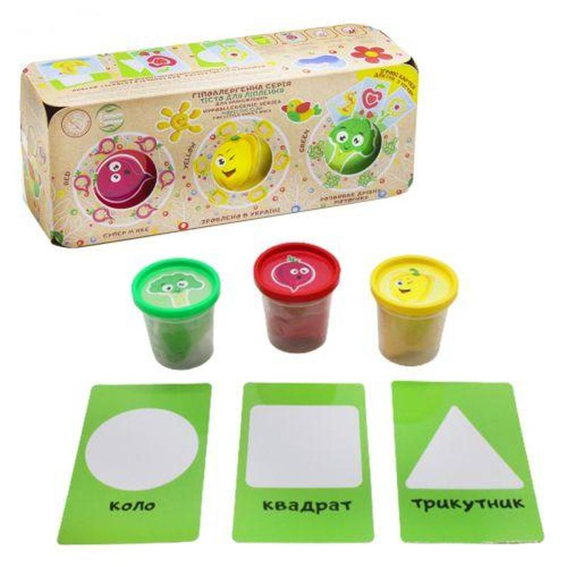 Набор теста для лепки. Гипоалергенная серия. Натуральные красители. Яркое цветное тесто, приятное на ощупь, нетоксичное. В стаканчике, что позволяет тесту дольше хранится и не засыхать. В наборе есть 3 карточки для игры с тестом. Упаковка: Коробка Цвет: Разноцветный Вес в упаковке: 425 г Габариты в упаковке: 9.5 x 24 x 6.5 см Cтрана производитель: Украина Материал: Комбинированный Комплектация: Тесто для лепки - 3 баночки по 100 г., 3 карточки для игры с тестом