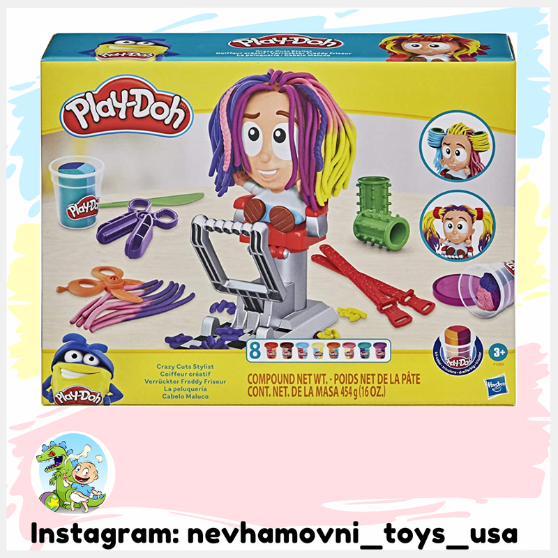В барбершопе Play-Doh приветствуется все стилисты! Эта игрушечная парикмахерская для детей от 3 лет позволяет им много способов поиграть в парикмахера и сделать «клиенту» самые деликатные прически, которые они могут представить. Посмотрите, как долго вы можете отрастить волосы Play-Doh, добавив как можно больше моделирующей смеси! Измените форму и густоту ложных волос с помощью игрушечных насадок для укладки. 8 трехцветных банок содержат по 2 унции и 3 цвета внутри для многих комбинаций. Детям также понравится использовать ножницы Play-Doh и бритву, чтобы подстричь клиента Play-Doh и начать все сначала! Созданный на основе классического игрового набора Fuzzy Pumper, этот игровой набор Play-Doh станет отличным подарком на дне рождения, праздники или любое другое творческое событие.