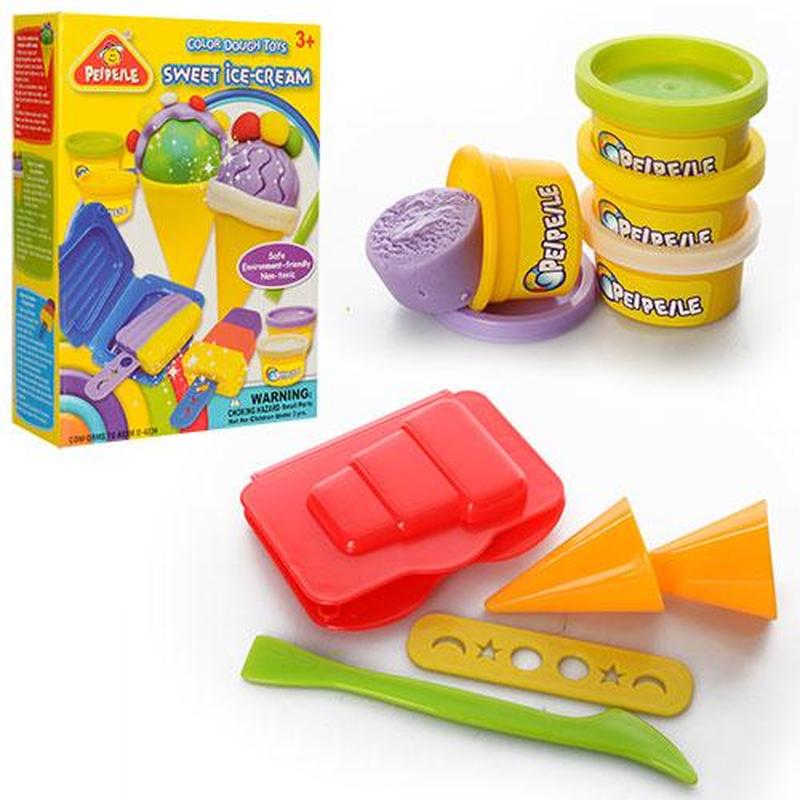 Игровой набор для лепки peipeile мороженое, 4 цвета, аромат, формочки 4шт, инструменты 3шт...