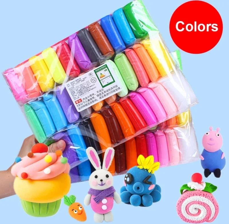 М'який, повітряний пластилін це пластична кольорова маса, що складається з води, харчових барвників і полімерів, яка не липне на меблях та підлозі, а після висихання зберігає форму. Зробити можна велику кількість різних виробів, будь-яку іграшку, скульптуру, одяг для лялькового персонажа, або просто зняти відбиток долоньки дитини для сімейного альбому. Різноманітна колірна гамма дозволяє зробити іграшки барвистими. Повітряний пластилін поміщений в герметичну упаковку, так як на відкритому повітрі і при кімнатній температурі здатний висихати, в результаті чого утворюється легка міцна форма, порівнянна по вазі з пінопластом. Особливості дитячого пластиліну Пластилін не прилипає до рук, одягу і предметів інтер'єру (як класичний пластилін) і для нього не потрібні які-небудь спеціальні дошки. Можна розминати, розривати і ліпити. Пластилін має легку вагу і його приємно тримати в руках. Застигає протягом 3-4 годин. Зберігається довгий час. Після застигання зберігається гарний зовнішній вигляд. Щоб повітряний пластилін завжди залишався м'яким, рекомендується покласти його в герметичний контейнер, без доступу повітря. Дитина в будь-який момент зможе дістати чудову масу і зробити з неї фігурки. Ціна вказана за набір 36шт.