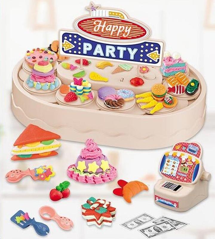 Відчуйте себе справжнім шеф-кухарем разом із цим набором для ліплення з тіста! Кулінарія є справжнім мистецтвом, адже презентація смаколиків завжди є важливим елементом смаку та задоволення, які люди отримають від їжі. Ліплення з тіста є чудовим способом розвинути фантазію та дрібну моторику рук малюка, а також просто цікаво й весело провести час із дитиною. Завдяки цьому набору ваша малеча зможе зліпити печиво різноманітних форм та прикрасити його яскравими начинками та елементами. Особливості: - набір створено у тематиці кулінарії; - до набору включено 10 кольорів тіста; - комплект містить форми для тіста та інструменти для ліплення, стилізовані під кухонне начиння; - до набору включено столик, який обертається т механічний касовий апарат; - столик працює від трьох батарейок типу "АА" (не включені до набору); - коробка для набору має візуальну інструкцію зі змішування нових кольорів тіста з наявних; - тісто є нетоксичним та повністю безпечним для малюка; - молди й інструменти виконані з міцного і легкого пластику яскравих кольорів. Розмір упаковки: 37 см × 8 см × 31 см