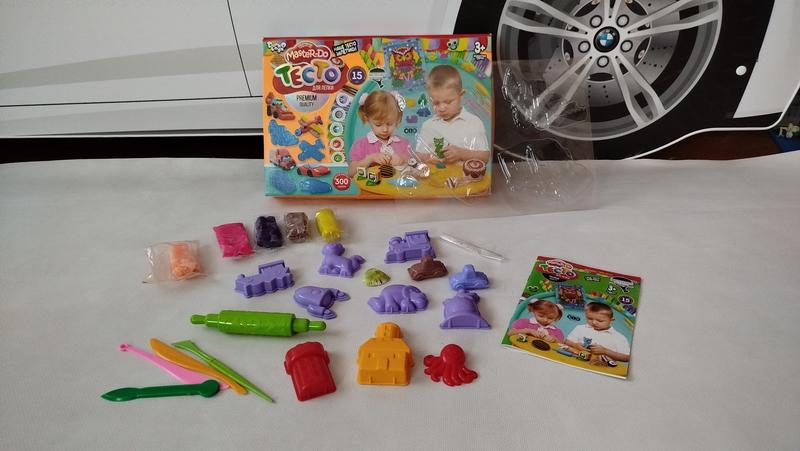 Отличный набор теста для лепки. Цена за все что на фото. Тесто 4 пакета хорошие, не открывались. Оранжевый пакет был поврежден и высох. Можно попробовать реанимировать.