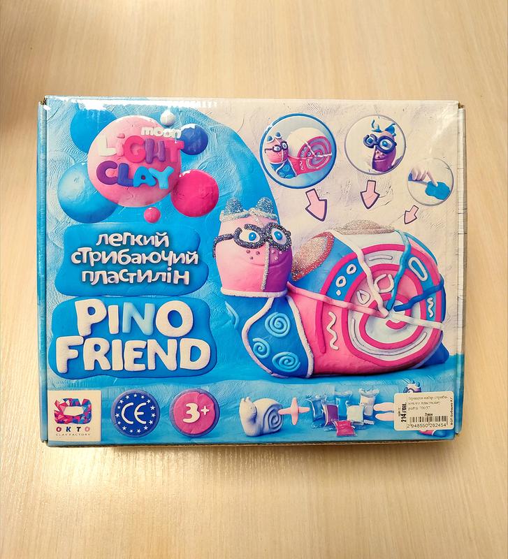Набір легкого пластиліну ТМ Moon Light Clay Pino Friend Райлі 70037 Набір для ліплення "Moon Light Clay Pino Friend". Серія Pino Friend — це цікаві пінопластові форми, які дитина зможе декорувати легким пластиліном, що стрибає, і блискітками, у такий спосіб моделюючи яскраві та унікальні твори мистецтва. Розмір фігурки — 13 см. Артикул: 70037 Імпортний: немає Бренд: Жовто Паковання: Коробка Колір: Різнобарвність Тип ел-тів живлення: Немає Ел- ти живлення в комплекті: Немає Вага з упаковкою: 445 г Габарити в упаковці: 22 x 28 x 12 см Країна-виробник: Україна Матеріал: Комбінований Комплектація: Форма, легкий магічний пластилін
