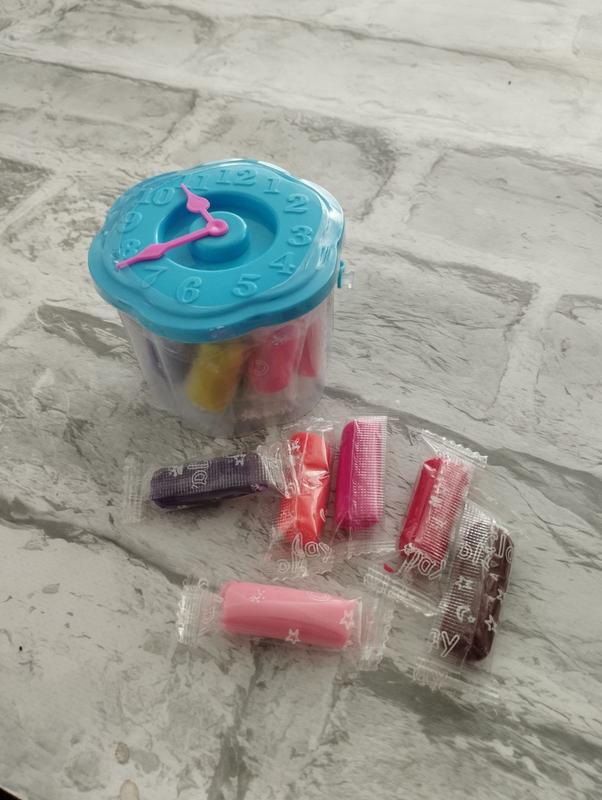 Тісто для ліплення для дітей, в дуже милій баночці в виді відеречка з годинником. В набір входить 14 елементів (саме тісто, кожен колір запаковано окремо та формочки). Використавши тісто, баночку можно використовувати як копілку, прикрасу інтер'єру або просто для якихось дрібничок. Цей набір буде чудовим подарунком як на свята, так і просто порадувати дитину. Тісто чудово розвиває моторику дітей, що впливає на розвиток мовлення. Вам (дорослим) також буде ціково провести час з вашим малюком.) Розміри відерця: Висота 6,5 см Ширина 7,5 см