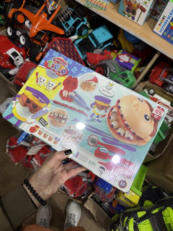 С этим набором Вы сможете почувствовать себя настоящим специалистом! Все легко и просто: формочки для создания зубов, “профессиональный инструментарий дантиста” и голова из набора помогут Вам в лечении зубов у игрушечного пациента! В комплект входят: Тесто для лепки – 10 шт.; Тесто для лепки в баночках – 5 шт.; Комплект из трех полимерных стеков; Форма для создания зубов – 1 шт; Форма “голова” – 1 шт; Пинцет – 1 шт; Зубная щетка – 1 шт; Форма для отпечатков брекетов – 1 шт; Дзеркало – 1 шт; Инструкция - 1 шт. Размер упаковки: 34х22х8 см. Возраст: 3+