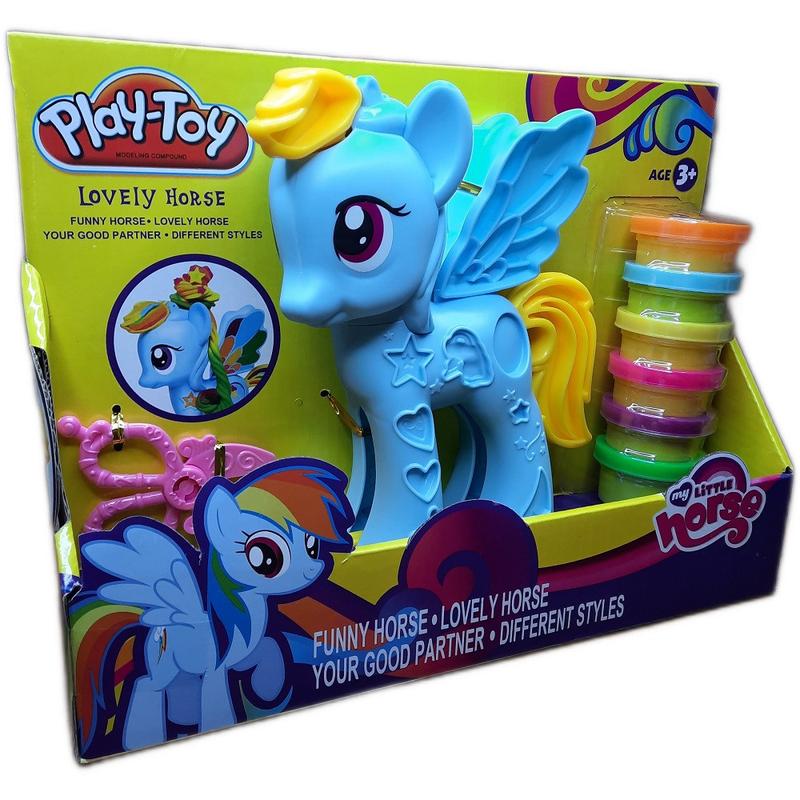 Игровой набор с тестом для лепки play-toy my little pony 6 мини-баночек пластилина и модел...