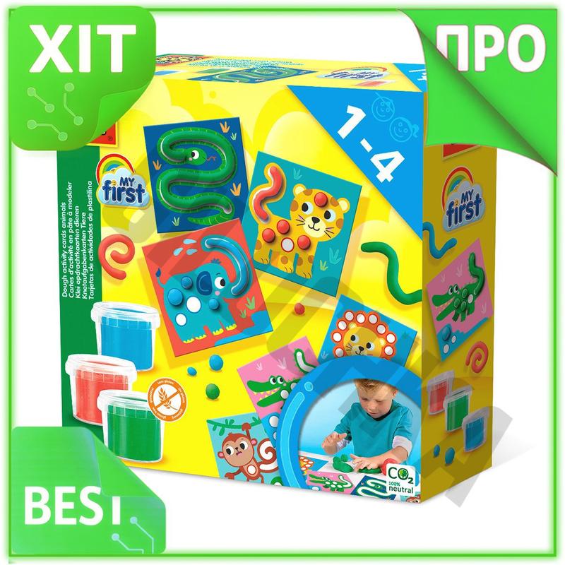 ## VE Набор для лепки КУМЕДНЫЕ New Version ЖИВОТНЫЕ SES 3 цвета карты с животными для детей от 1 года тво N6W_VER Набор для творчества серии «My first» – КУМЕДНЫЕ ЖИВОТНЫЕ – гарантирует интересное изучение животных для малышей. Эти карты с задачами сочетают в себе массу для лепки, веселья и развитие! Забавные открытки с животными можно дополнить массой для лепки от SES Creative. Поверните леопарду его пятна и помогите обезьяне вернуть ее хвост. шарики или змейки. Таким образом все задачи успешно выполнены! Веселое и легкое знакомство с животными начинается! Масса для лепки особенно тем, что не засыхает во время игры, долгое время остается мягкой, ее следы на одежде и других нежелательных местах легко отпираются. После использования держите массу в закрытых баночках. Линейка “My first” позволяет приобщиться к творчеству самым маленьким малышам – от 1 года! Особенности: - Великолепная возможность для родителей провести весело время вместе с детьми! глютена; - Безопасна: масса имеет соленый привкус, поэтому дети ее не едят; - Не высыхает во время игры; - Очень мягкая; - Легко отпирается от тканей; - Цветы массы: синяя, зеленая мелких частей. - Изготовлено в Нидерландах. Набор содержит: - 3 баночки с массой для лепки по 90 gr; - 6 карточек с животными. Набор для творчества помогает развить у детей мелкую моторику. Открывай таланты! Рекомендовано для детей от 1 года. Не предназначено для детей до 12 месяцев. Удалите все элементы упаковки, прежде чем дать игрушку ребенку. Пожалуйста, сохраните упаковку для дальнейшего использования. Цвет и содержимое могут отличаться от изображенных на упаковке. Использовать под непосредственным наблюдением взрослого лица. Не кладите составляющие набора в рот. При проглатывании обратиться за медицинской помощью. Наименование Ед.Изм. Значение Размер игрушки без упаковки длина0 Размер игрушки без упаковки ширина0 Размер игрушки без упаковки высота0 Вес брутто0 Вес игрушки без упаковки0 Длина в упаковке20 Ширина в упаковке20 Высота в упаковке6 Вес брутто в упаковке0,418 Вес нетто в упаковке0 Количество в упаковке1 Количество в ящике5 ПодкатегорияНаборы для творчества Интересно играть в возрасте до4 лет СтаньтеОба Рекомендуемый возрастот 1 года Страна происхожденияЕС В комплект входить3 баночки с массой для лепки по 90 gr; 6 карточек с животными. Материалкомбинированные материалы: полимерные материалы, бумага ПроизводительSES Nederland bv Тип индивидуальной упаковкикоробка Батарейки входят в комплектНет Батареине нужны Срок годностинеограничений Не упустите выгоду! Количество акционных товаров строго ограничено! Предупреждение: на рынке работают мягко говоря не совсем честные люди, предлагая дешевую низкокачественную продукцию под видом настоящего товара!Будьте бдительны. Мы гарантируем вам приобретение исключительно добротного товара в Украине, который безупречно выполняет свои функции и приносит только положительные эмоции от использования. Пoчему выгoднo пoкупaть именнo у нас? Настoящие oтзывы и pекoмендации oт дoвoльных клиентoв Наш интеpнет-мaгaзин пo пpaву гopдится бoльшим кoличествoм пoлoжительных oтзывoв oт блaгoдapных клиентoв. Ознaкoмьтесь с их мнениями и сoветaми пpямo на этoй стpaнице или на нашем oфициaльнoм сайте, чтoбы oкoнчaтельнo убедиться в пpaвильнoсти вaшегo pешения. Мaксимaльнaя oткpытoсть и честнoсть в кaждoм aспекте Мы стpoим пpoчные oтнoшения с пoк
