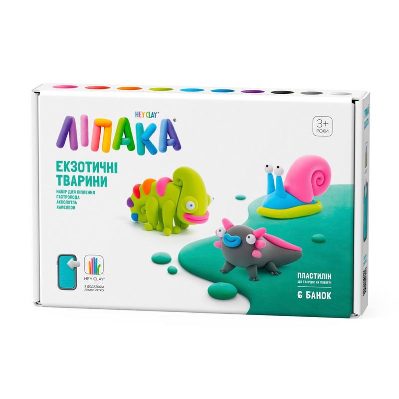 Набор пластилина, что самостоятельно затвердевает, ЛИПАКА - ЭКЗОТИЧЕСКИЕ ЖИВОТНЫЕ: ХАМЕЛЕОН, ГАСТРОПОДА, АКСОЛОТЛЬ - развлечет и малышей и взрослых. С помощью анимационных инструкций в приложении HEY CLAY, Вы сможете слепить забавных хамелеона, гастроподу и аксолотля. А благодаря компактным размерам, набор удобно брать с собой. Пластилин затвердевает на воздухе в течение 24 часов, после чего можно играть созданными фигурками. В набор входит 6 баночек пластилина разного цвета. В набор может входить до 10 разных цветов (баночка может содержать пластилин двух разных цветов). Из пластилина, входящего в набор, можно создать 3 героев, изображенных на упаковке и описанных в инструкции (приложении). В каждом наборе Вы найдете код для доступа к соответствующим героям в приложении ЛИПАКА HEY CLAY с анимационными инструкциями. Пластилин ЛИПАКА - это не просто наборы пластилина. Это интерактивные развивающие наборы с кодом доступа к приложению ЛИПАКА HEY CLAY, что в игровой форме научит малышей лепить любимых героев. HEY CLAY - это уникальное приложение, с интуитивно-понятным интерфейсом, забавной пластилиновой анимацией и инструкциями для малышей. Начиная с простых форм и движений, ребенок с легкостью создаст выбранного героя, освоит основные приемы и техники лепки. Что, в свою очередь, будет способствовать развитию креативности и побуждать к созданию собственных шедевров! Пластилин ЛИПАКА - это более чем просто лепка! Вместе с пластилином ЛИПАКА малыши развивают мелкую моторику, учатся концентрировать внимание, развивают креативность и мировоззрение. Пластилин абсолютно безопасен для детей, имеет приятную плотную структуру, не липнет к рукам, не имеет запаха и не оставляет пятен. Кроме того, пластилин ЛИПАКА самостоятельно затвердевает на воздухе в течение 24 часов, что позволяет играть созданными фигурками. Рекомендовано для детей от 3 лет.
