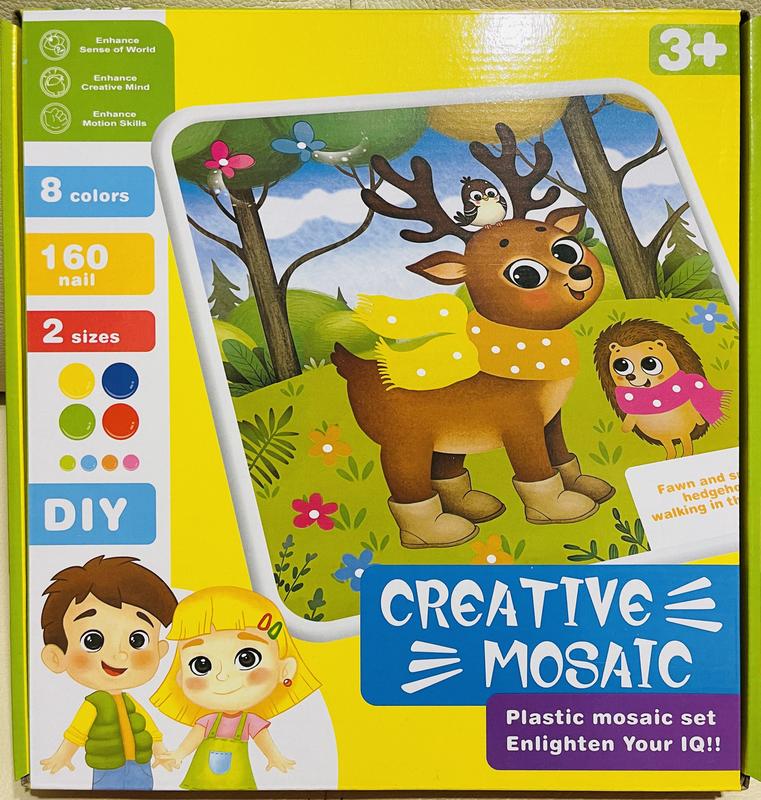 Набор для творчества "Мозаика" , (животные), картинки 6 шт, фишки, 160 деталей, с аксессуарами, в коробке 30*29*4 см