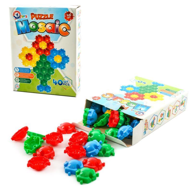 Іграшка "Мозаїка - пазли". 40 деталей, 4 кольори. Матеріал - пластик. Паковання — коробка. Розмір - 22х5,5х17,5 см.