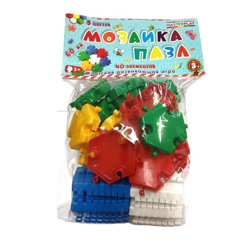 Іграшка "Мозаїка - пазл". 40 деталей, 5 кольорів. Матеріал - пластик. Упаковка - пакет. Розмір - 38х8х17 см.