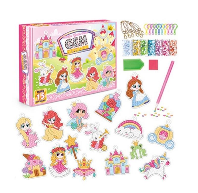Набір для творчості алмазна мозаїка "принцеси, тваринки, замок" sk8019 брелок, 15 штук