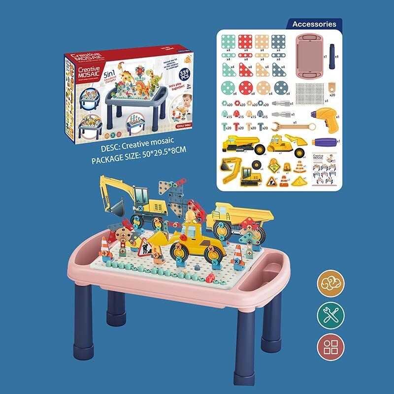 Эта яркая мозаика сочетает в себе сразу несколько видов деталей, благодаря чему ребенок сможет собрать не только плоские картинки, но и трехмерные фигурки и сценки. Также в набор включены инструменты для того, чтобы упростить процесс сборки мозаики, в том числе электрическая отвертка. Такая многофункциональная игрушка надолго привлечет внимание малыша, ведь то, что можно с нее собрать, ограничивается только воображением ребенка. Игра с мозаикой отлично развивает не только творческие способности малыша, но и его стратегическое и логическое мышление, тренирует мелкую моторику ручек и общую координацию движений, ведь собрать картинку из мозаики – это кропотливый труд, который требует терпения и аккуратности. Особенности: – 339 деталей; - мозаика собирается в удобном подносе, который может превратиться в столик; - Размеры подноса: 50х29 см; - Высота столика: 24 см; - мозаика имеет два вида элементов: обычные "гвоздики" и винтики, благодаря которым можно собрать объемные фигурки; - в набор входят картонные детали для сбора фигурок животных; - в набор включена обычная и электрическая отвертки для более быстрого закручивания и откручивания винтовок; - электрическая отвертка работает от двух батареек типа "АА" (не включены в набор); - в набор включена иллюстрированная инструкция с примерами фигурок и рисунков, которые можно собрать. * Характеристики и комплектация товара могут меняться производителем без предупреждения