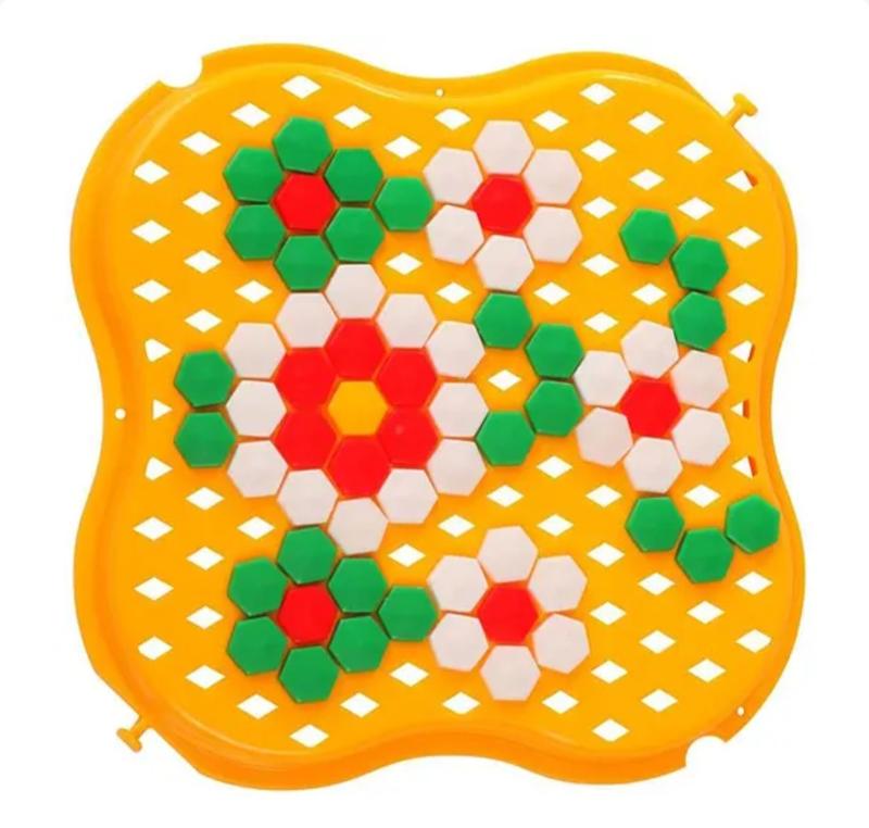 Развивающая игрушка «Мозаика» мини развивает мелкую и крупную моторику рук, координацию и ловкость движений, интеллект и внимание ребенка. Из деталей конструктора ребенок излагает любой рисунок – это может быть простой геометрический узор или сложнее изображение. Состоит из 136 элементов+игровое поле. Размер:18х18см.Цвет- желтый.Вик-3+ Б/в, состояние идеальное.