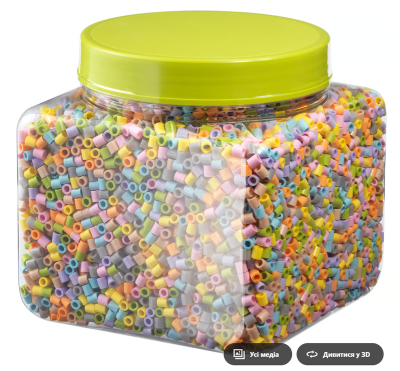PYSSLA Бисер разных цветов, 600 г Дайте волю своему творчеству и создавайте собственные красочные дизайны, располагая бусины на шаблонах PYSSLA. Каждый контейнер содержит около 13 000 кораллов разного цвета. Если вы хотите создать украшения, ожерелья и браслеты, вы можете нанизать бусины. Помогайте детям развивать мелкую моторику и координацию рук и глаз.