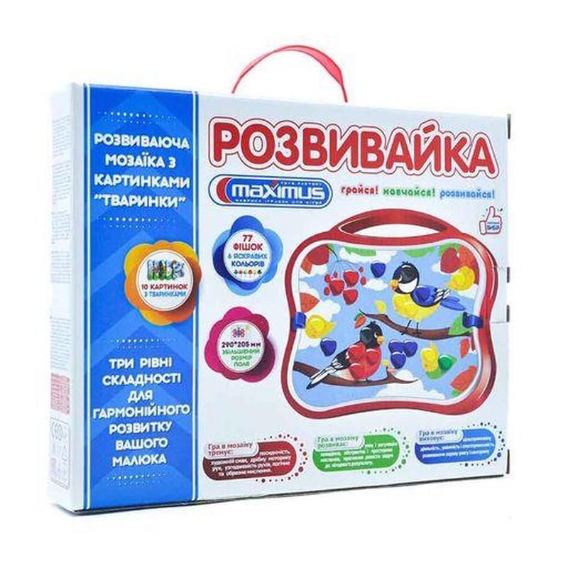 Набор для творчества maximus мозаика развивайка, от 3 лет, 77 фишек, 10 картинок (5423)