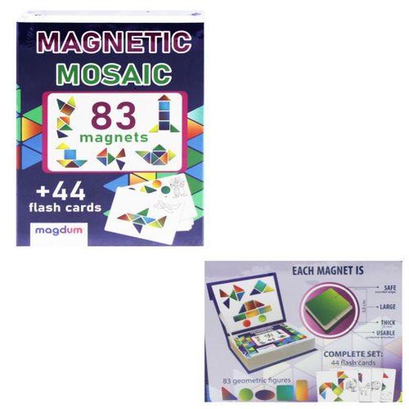 Магнитный набор состоит из 83 магнитов и 44 флеш карточек. На карточках изображены фигуры, которые нужно повторить, сложив с помощью магнитов. Набор выполнен в виде разных геометрических фигур. Толщина одной фигурки 3 мм с магнитной основой. Для детей от 3-х лет._ Бренд: Magdum Возраст: 3 года Упаковка: Пленка Цвет: Разноцвет Вес в упаковке: 575 г Габариты в упаковке: 5 x 15.5 x 22 см Cтрана производитель: Украина Материал: Комбинированный Комплектация: 83 магнита, 44 флеш карточки