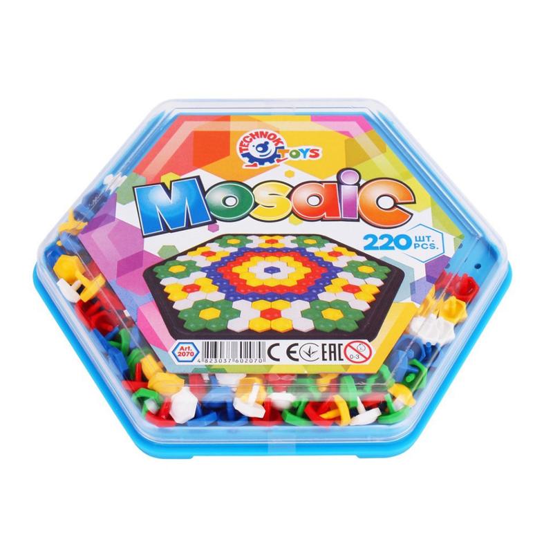 Класична мозаїка в пластиковому корпусі з прозорою кришкою і 220 фішками- гвоздиками. На інструкції і упаковці зображені зразки візерунків. Малюкові буде цікаво і весело проводити час з мозаїкою і розвивати фантазію. Діаметр фішки - 13 мм, чотири кольори. Для дітей від 5-ти років. Розмір упаковки: 22,5х20х3,3 см.