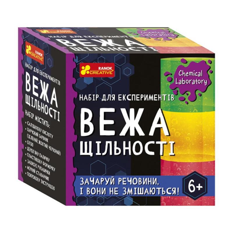 Детский набор для экспериментов "Башня плотности" 10138036У. Наука – это просто, не веришь? Проверь! Невероятный эксперимент в каждой коробке! Подарок- открытие каждый день! "Башня плотности" - это возможность зачаровать вещества, и они не смешаются! Из веществ разной плотности можно "построить" разноцветную башню! Попробуй перемешать этажи башни. Что у тебя получится? Проверь. Ты будешь очень удивлен! Набор содержит: салициловую кислоту, пищевой краситель (зеленый, желтый, красный), растительное масло, деревянную палочку, пластиковую формочку, защитные перчатки, мерный стаканчик, пошаговую инструкцию. 5-8-5см Внимание. Производитель оставляет за собой право изменять комплектацию, цветовую гамму и характеристики товара без предварительного уведомления. После оформления заказа мы свяжемся с Вами в течение 2-х часов и если у Вас возникнут вопросы, мы с радостью на них ответим.