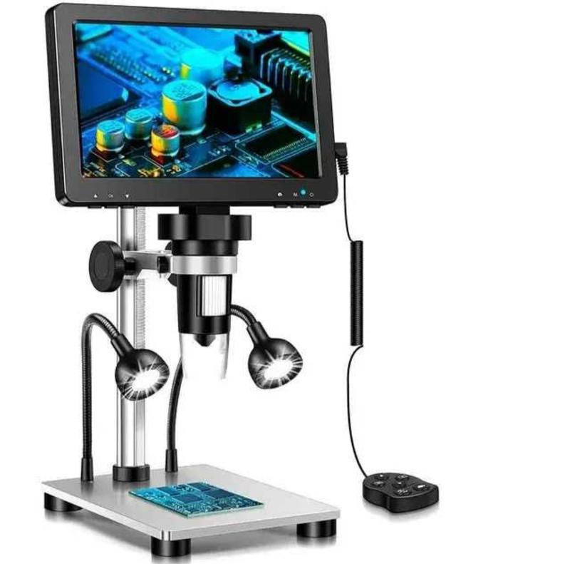 Цифровой микроскоп с пультом управления на штативе DM9 предназначен для увеличения различных предметов. Данный прибор пригодится биологическим, ювелирам, схемотехникам, часоврям и работникам других профессий, где необходимо рассматривать мелкие предметы. Микроскоп данной модели выпускается под марками Elikliv, Hayve, Tomlov, Rievbcau Данный прибор имеет максимальное увеличение 1200Х. Камера фиксируется на штативи, что может двигаться вверх-вниз. Большой экран с диагональю 7" может менять угол наклона. Фокусировка объектива происходит вручную. Микроскоп может хранить фото размерами до 12 MП и видео в качестве 1080FHD, 1080P, 720P на карту памяти до 32 Гб. Для удобства пользователя кроме основного источника света инструмент оснащен двумя дополнительными светодиодными фонариками на гибкой стойке и пультом управления, что повышает удобство навигации по меню прибора. Кроме того, микроскоп может быть подключен непосредственно к ПК. Технические характеристики дисплей: 7 дюймов HD ЖК-дисплей; увеличение: кратность до 1200; расстояние фокусировки: от 10-40 мм; тип фокусировки: ручная; разрешение видео: 1080FHD, 1080P, 720P; разрешение фото: 3M, 5M, 8M, 10M, 12M; язык: 13 языков; напруга зарядки (порт type-C) – 5 В, 2 А; потребляемая мощность: 2 Вт; гнездо карты памяти (Micro SD): поддержка до 32 Гб. Комплектность микроскоп DM9 – 1 шт; штатив – 1 шт; пульт – 1 шт кабель type-C – 1 шт; инструкция – 1 шт.