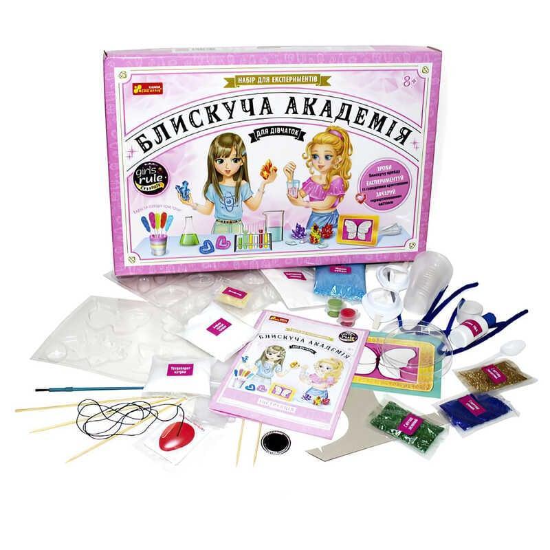 Набор для научных экспериментов 'блестящая академия для девочек' 12114121у / 9789у 'ранок'