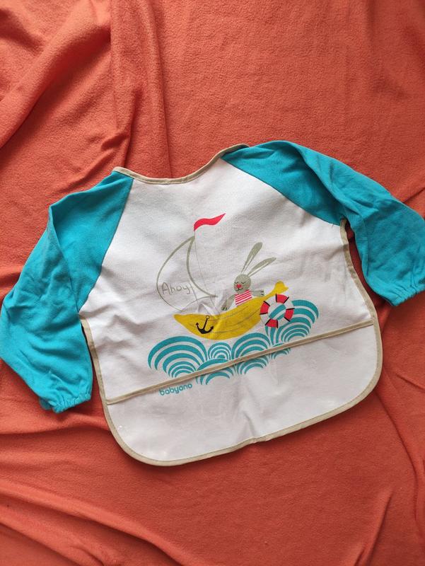 Фартук для творчества Babylon. Стан - идеальный. Нюанс виден на фото, в исполнении не был. рукава трикотаж, белая часть спереди трикотаж, подкладка водоотталкивающая. Рукав от горловины 35 см, длина спереди 39см.